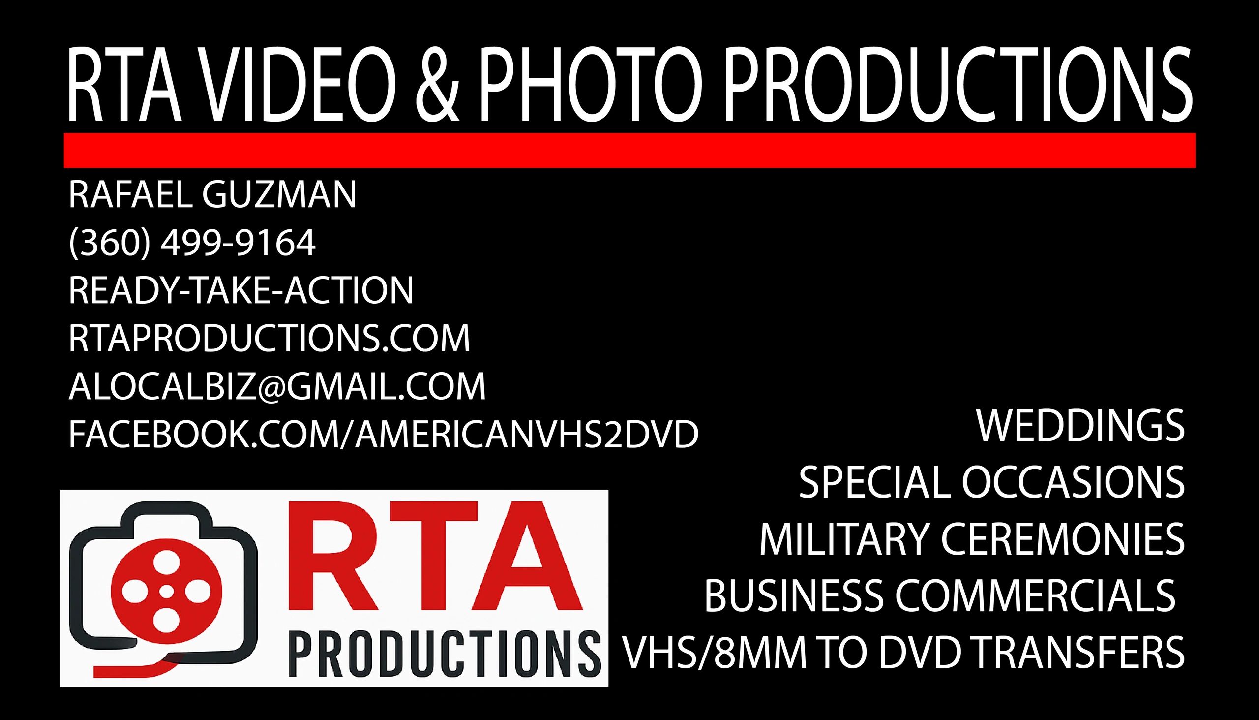 Disclaimer: All Videos & Photos (Excluding VHS/8mm Transfers), RTA PRODUCTIONS has the rights to use for marketing purposes. RTA Productions may share on any Social Medias or with future customers for marketing purposes.